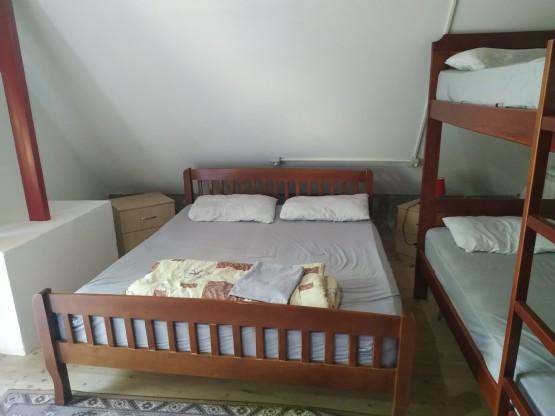 Kjo dhome ndodhet ne katin e dyte.Ka nje krevat dopjo.Ka nje krevat dyshe marinari.Ka interrnet falas ne çdo dhome dhe ne ambjentet e perbashketa.Ka banje te brenda.Per femijet nen moshen 10 vjeç eshte me gjysem çmimi.Nuk lejohen kafshet shtepiake ne fjetje brenda.